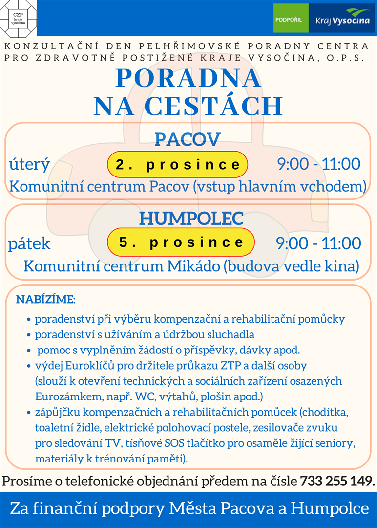 Poradna na cestách - Pacov 2.12. a Humpolec 5.12.2025